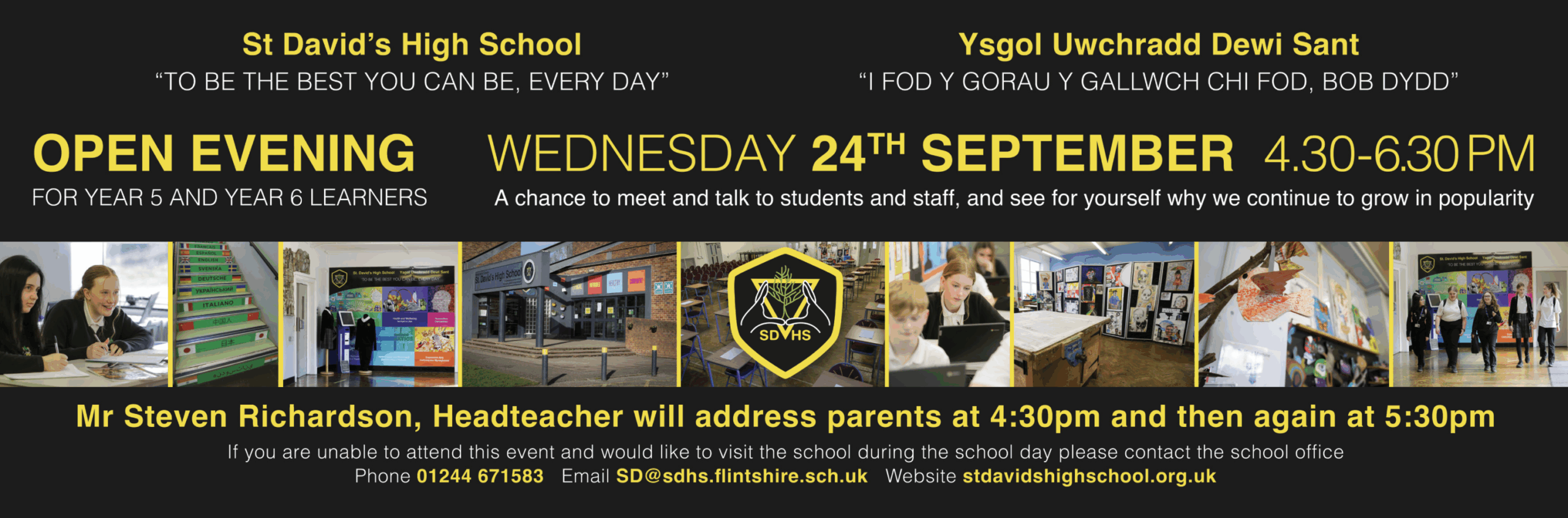 Welcome to St. David’s High School. I hope you enjoy reading through the various sections of our website and find everything that you need here. This website only gives you a flavour of what we’re about of course and I would always encourage you to visit us and meet with our fabulous young people and our hard working and caring staff team.